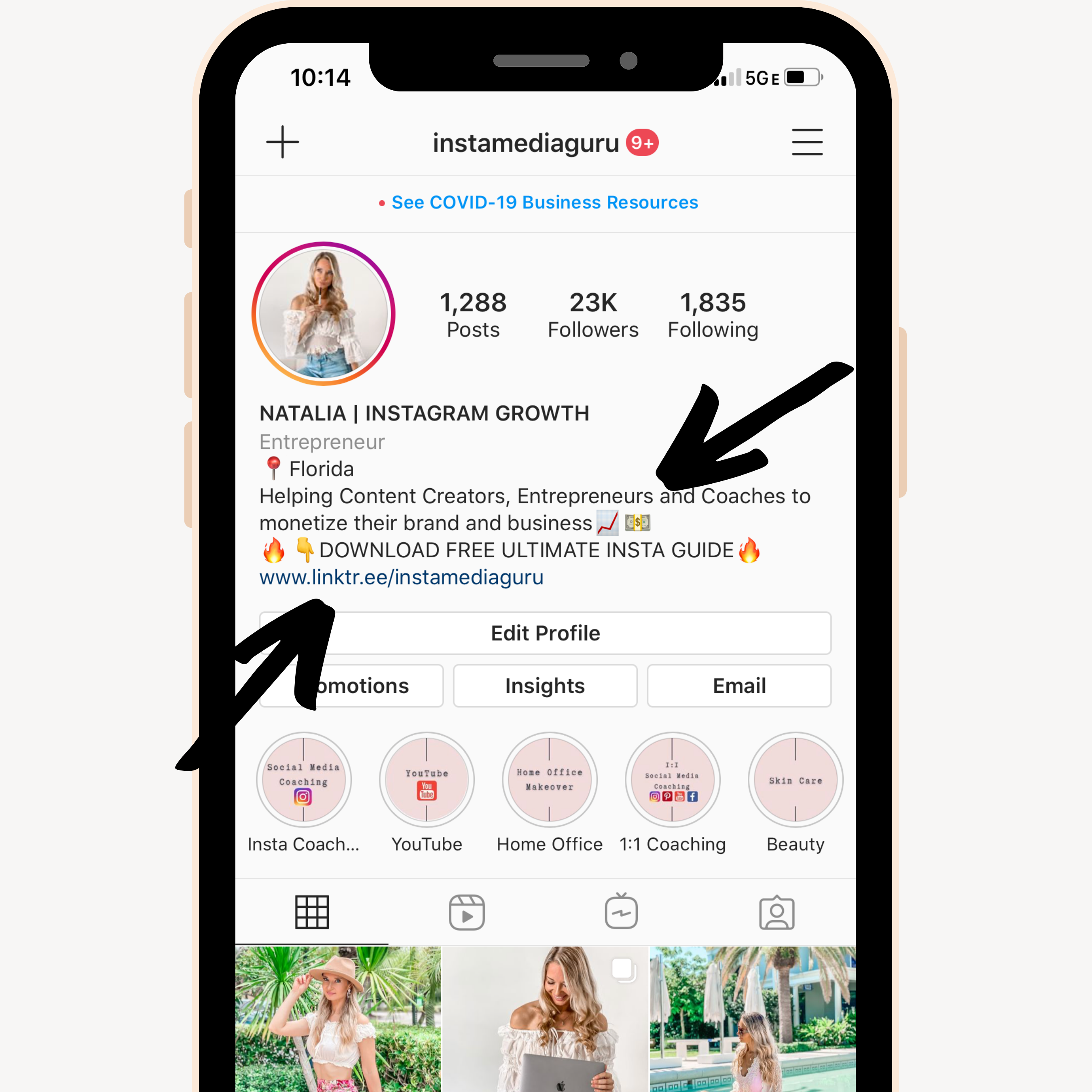 Include a link in your bio, but remember to describe what your potential followers, clients or brands can find by clicking the link, add a description above the link.