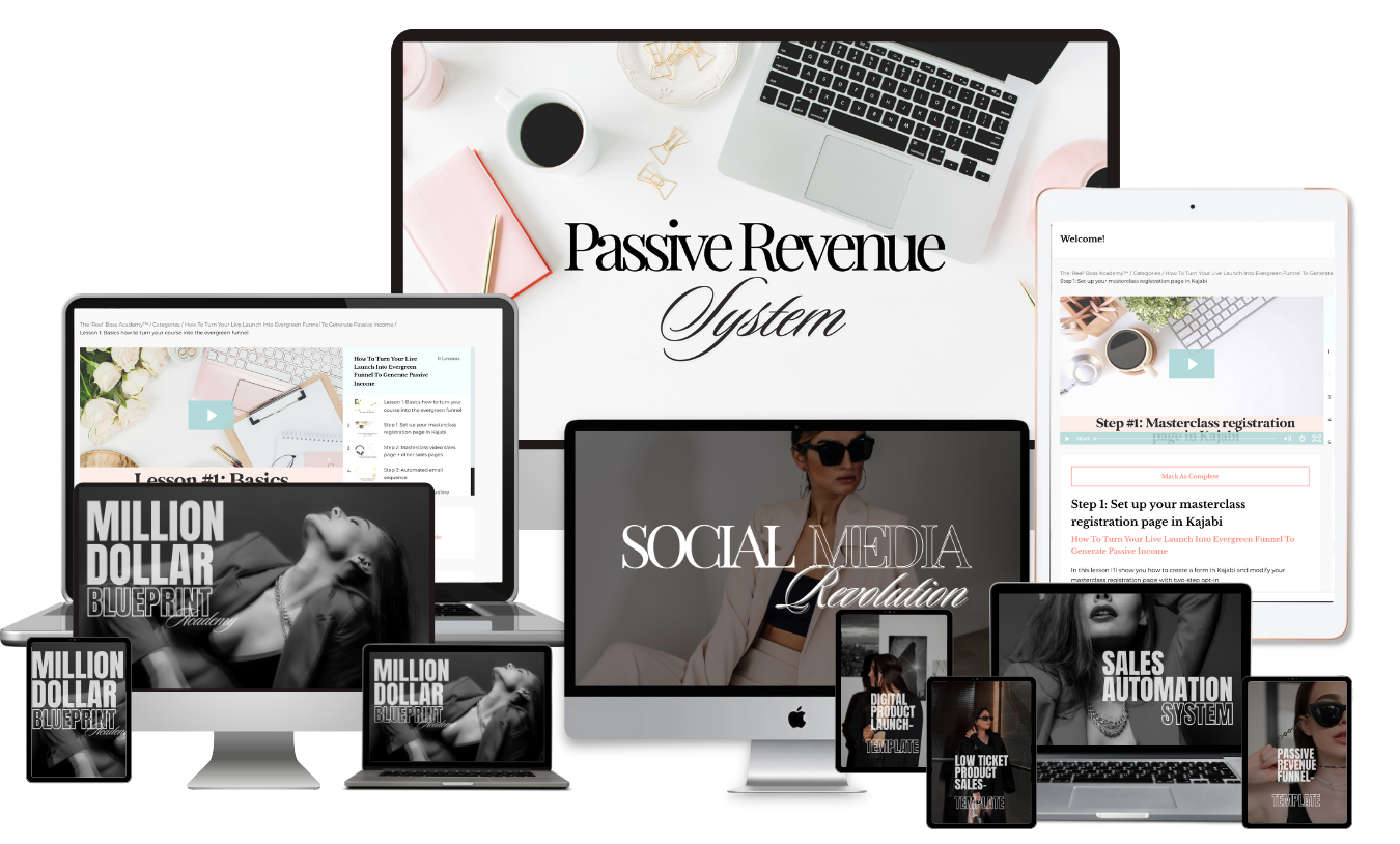 - how to turn your digital course into a passive revenue funnel with a pre-recorded webinar set up for sales on autopilot with premade presentation template, website templates, email scripts and social media strategy (you don't even have to show your face)