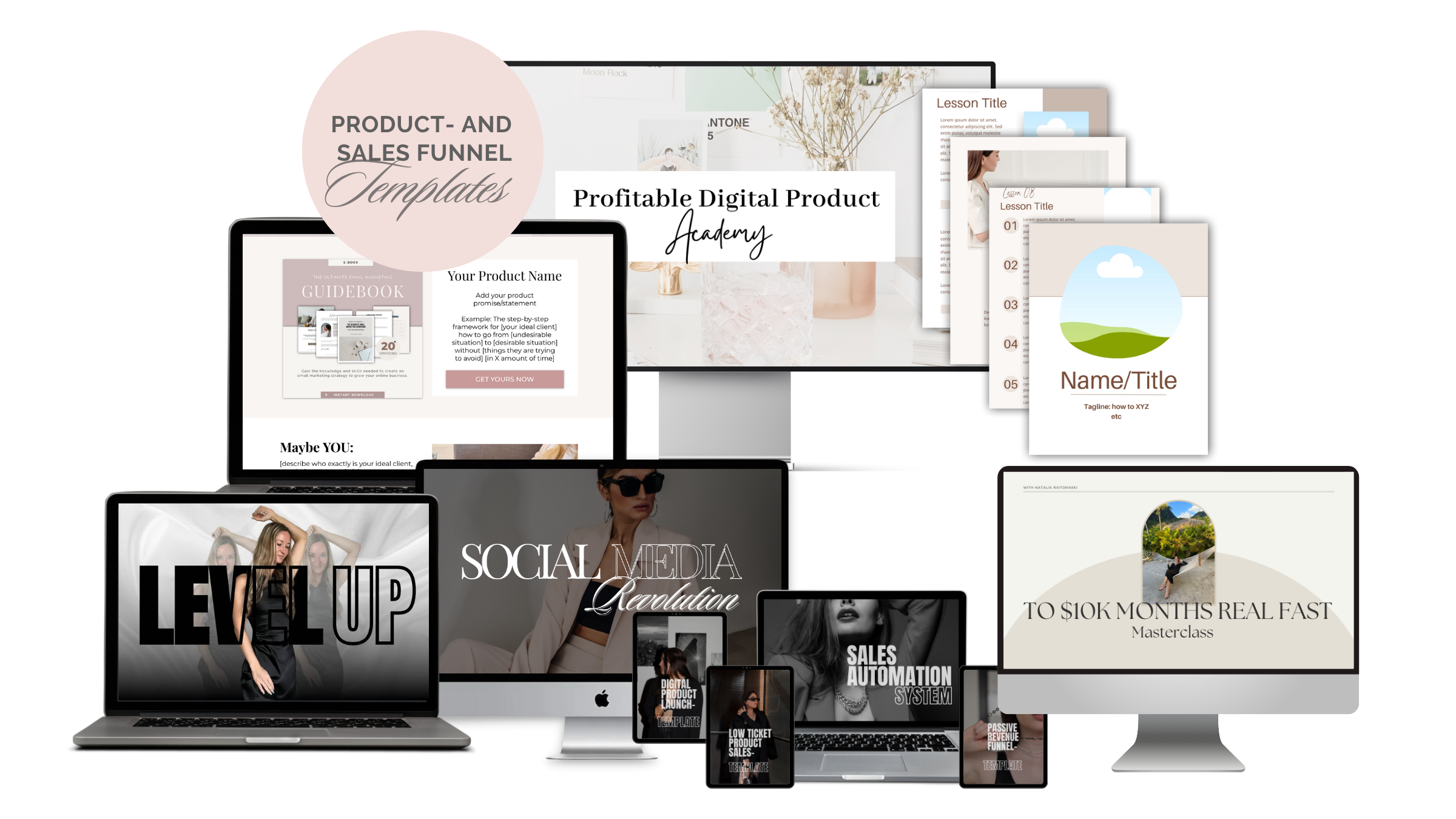 Step-by-step course how to create & sell a low ticket digital product like an ebook, planner, journal etc, & BONUSES: Sales Automation System course + templates, Social Media Revolution, To consistent $10k months real fast masterclass and Level Up program