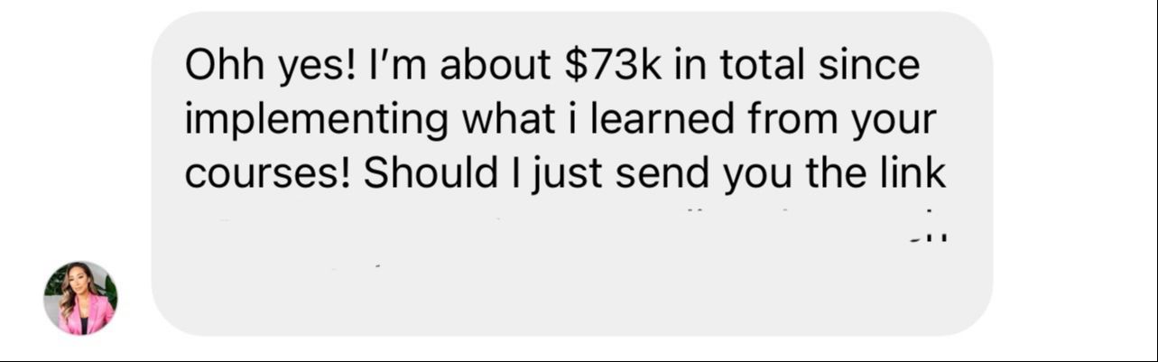 "I grew from 400 to over 70,000 followers and I've made $72,000 so far in my course sales!! The Profitable Course Academy bundle is worth wayyy more. The results and amount of detail and guidance inside of this course to get these types of results is just amazing!"