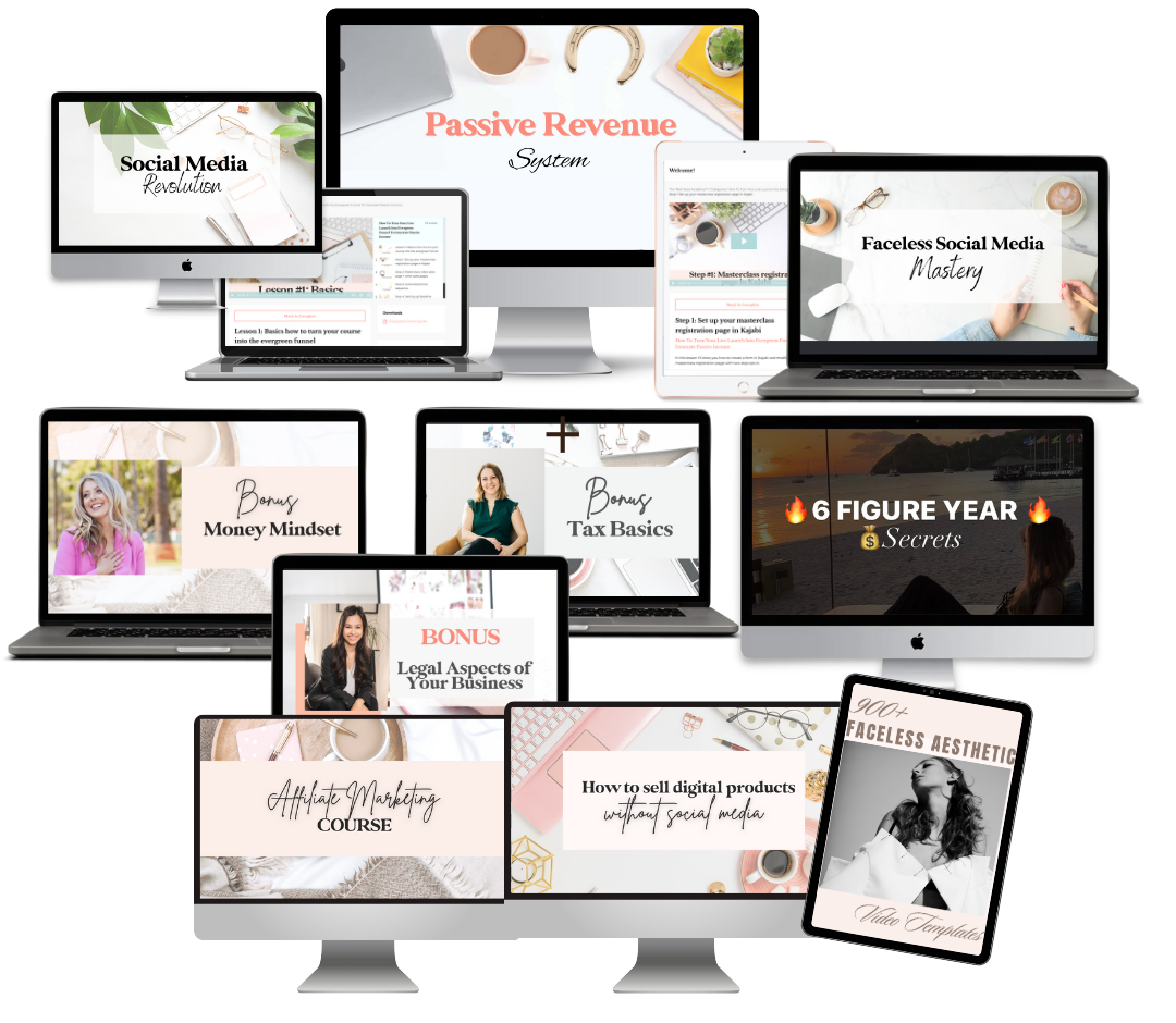 Step by step course how to turn your digital or physical products and courses in passive revenue and evergreen funnels to make more sales on autopilot (presentation-, sales page templates etc included) + BONUSES (Social Media Revolution, Faceless Social Media Mastery, Money Mindset, Tax Basics, Legal Aspects, Affiliate Marketing Course, How to sell digital products without social media, 900+ Social Media Video Templates and 6 Figure Year Secrets)