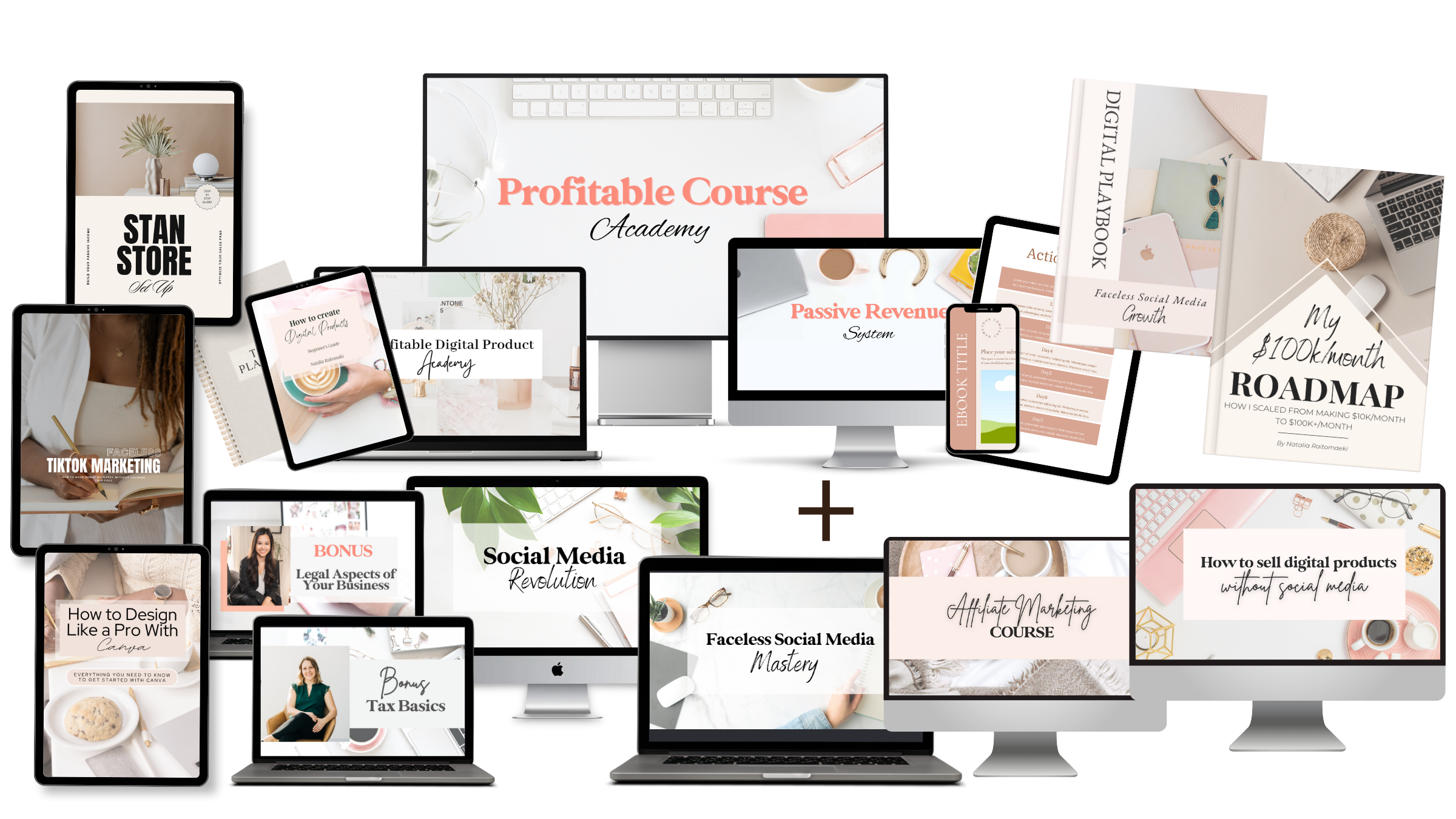 All-in-one shop with ALL step-by-step frameworks how to create and sell your own digital products and digital courses & how to automate your business for generating revenue from your digital products as passively as possible