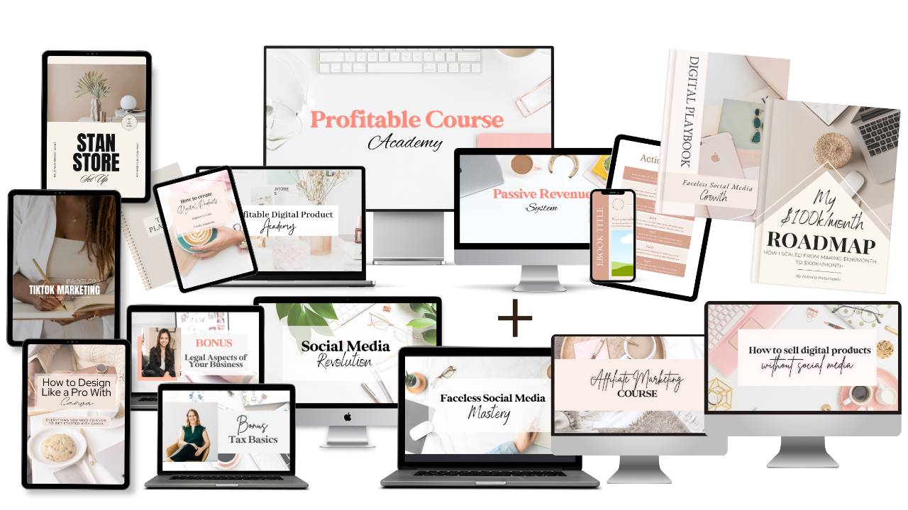 ✔️ Step-by-step comprehensive programs: Profitable Digital Product Academy, Profitable Course Academy & Passive Revenue System