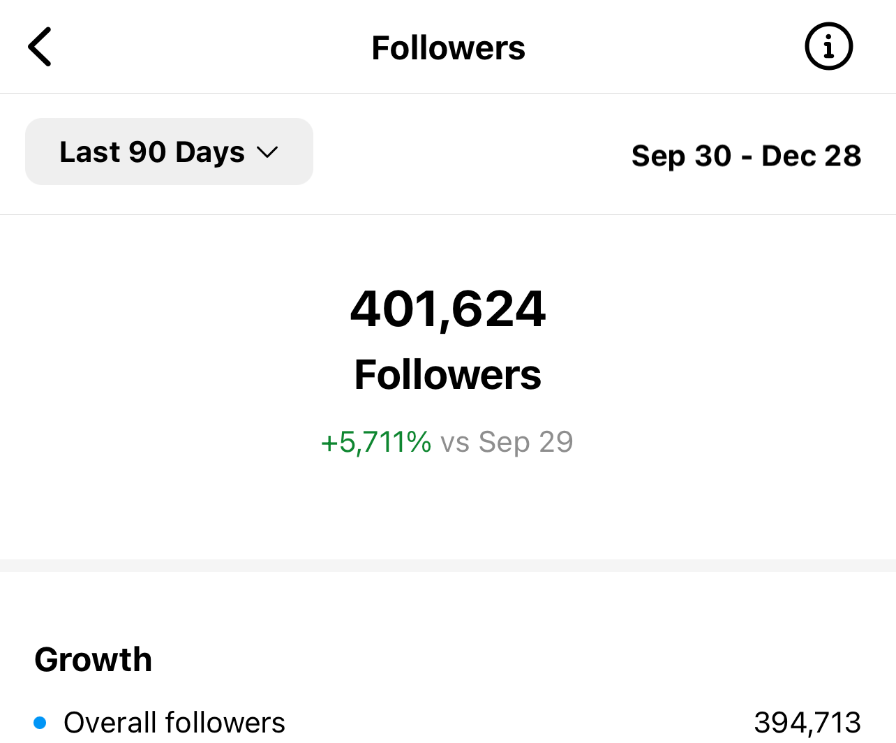 With this strategy I've personally grown my **Brand New** account from scratch to over 400,000 followers in just *3 months*, and another account to over 140,000 followers. All using my content strategies!